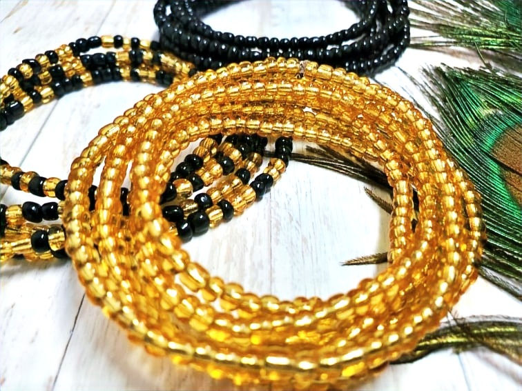 Waistbeads are beautiful adornments made from glass beads, shells, gemstones, metals and other types ofbeads, along with string. They are used mostly by women to embrace femininity, themselves and their cultural and historic genes.