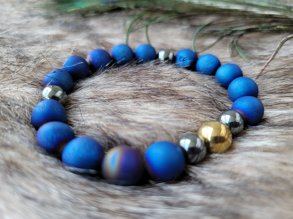 ::Blue Drazy Agate with Silver and Gold Hematite::